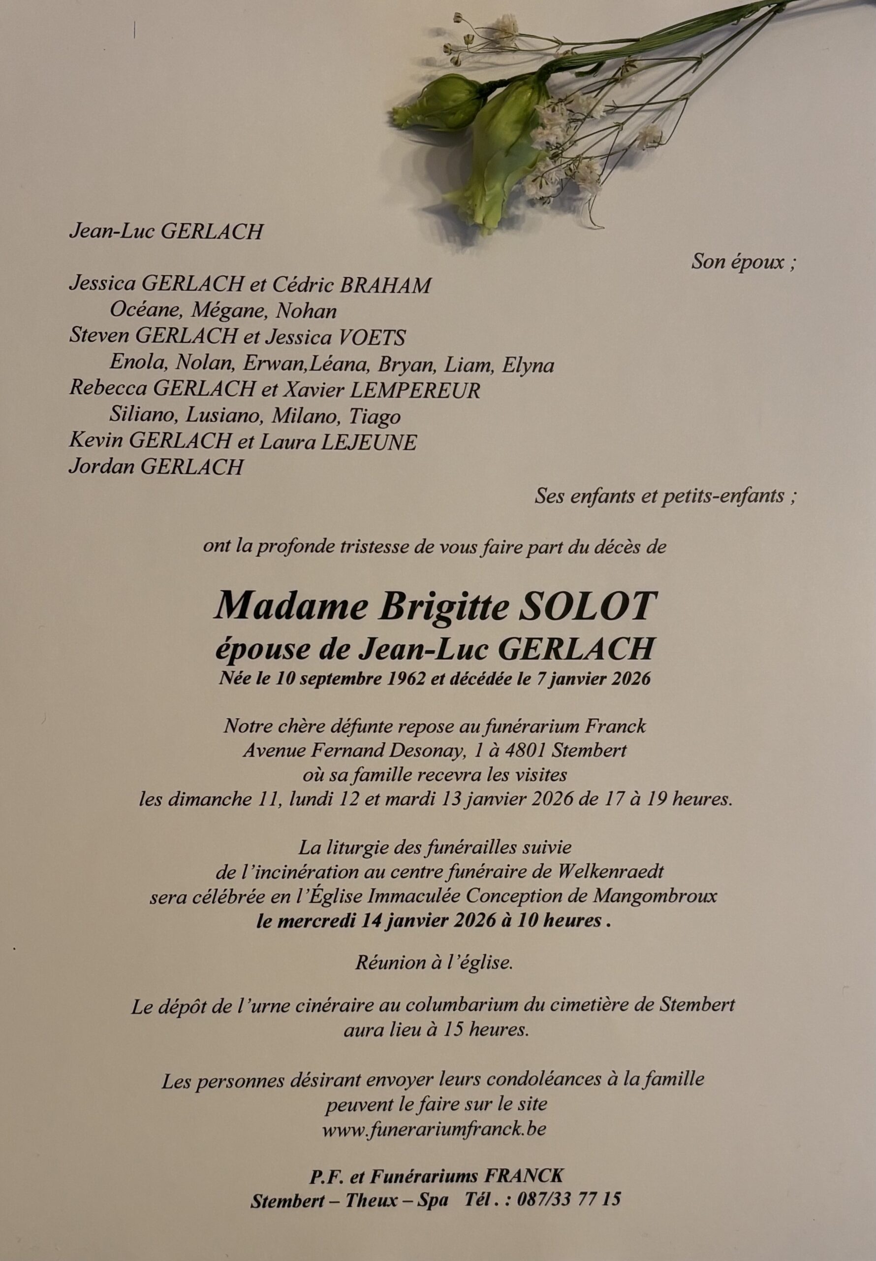 Envoyez vos condoléances à la famille