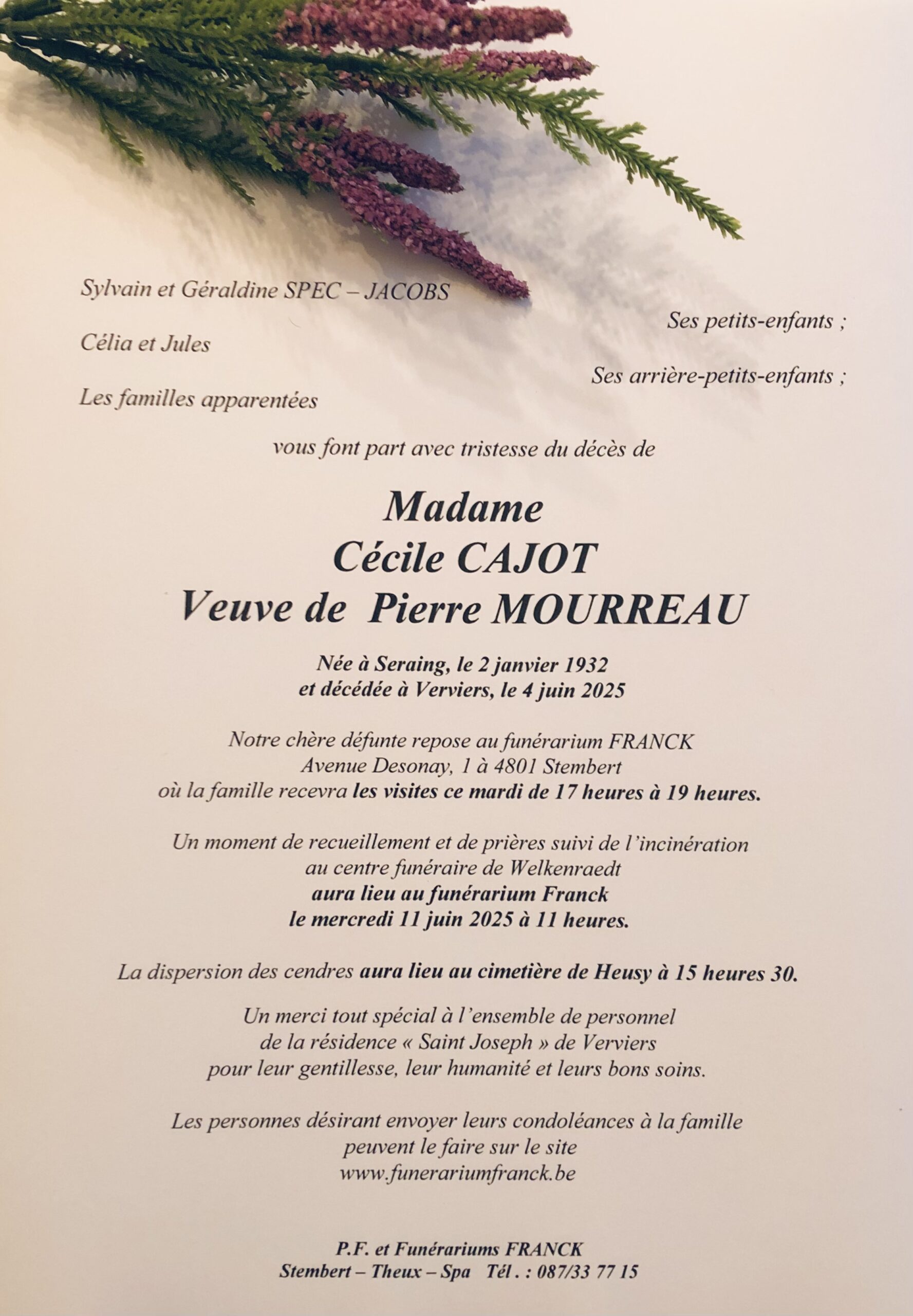 Envoyez vos condoléances à la famille