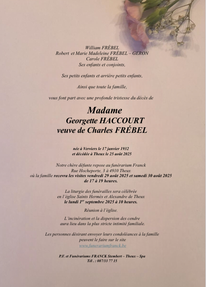 Envoyez vos condoléances à la famille