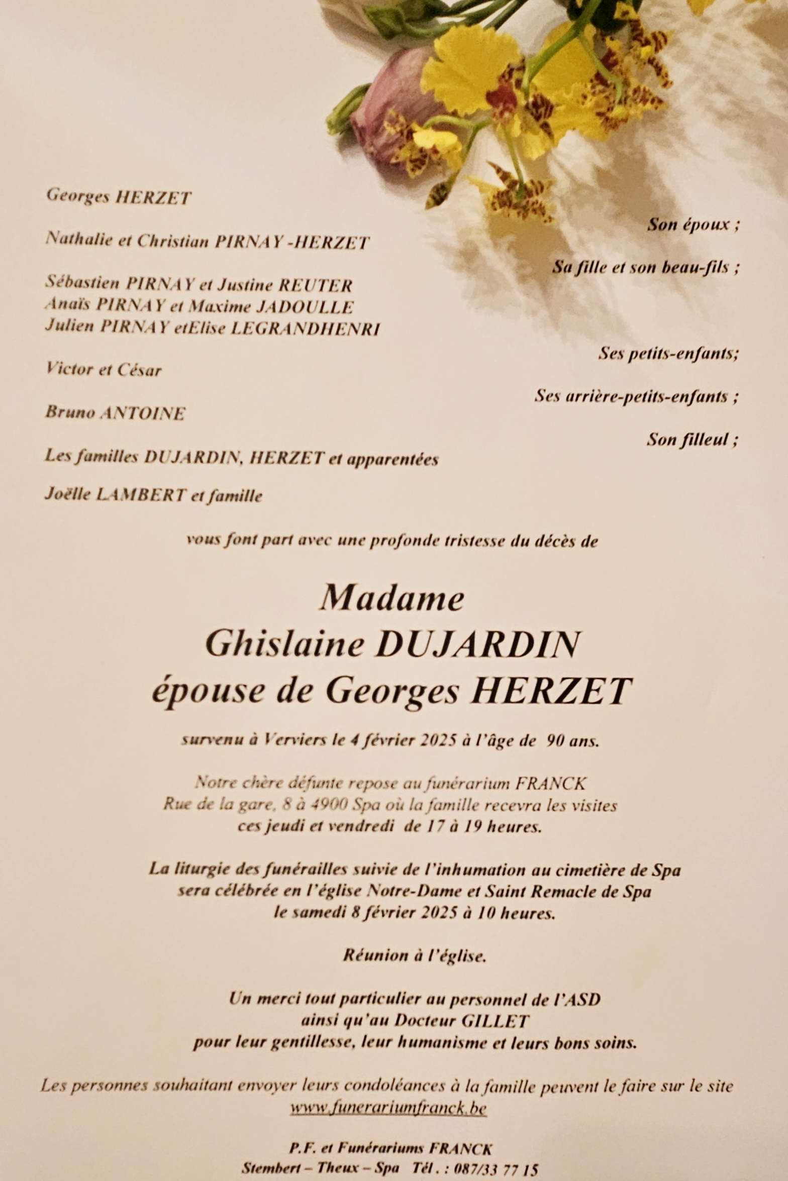Envoyez vos condoléances à la famille