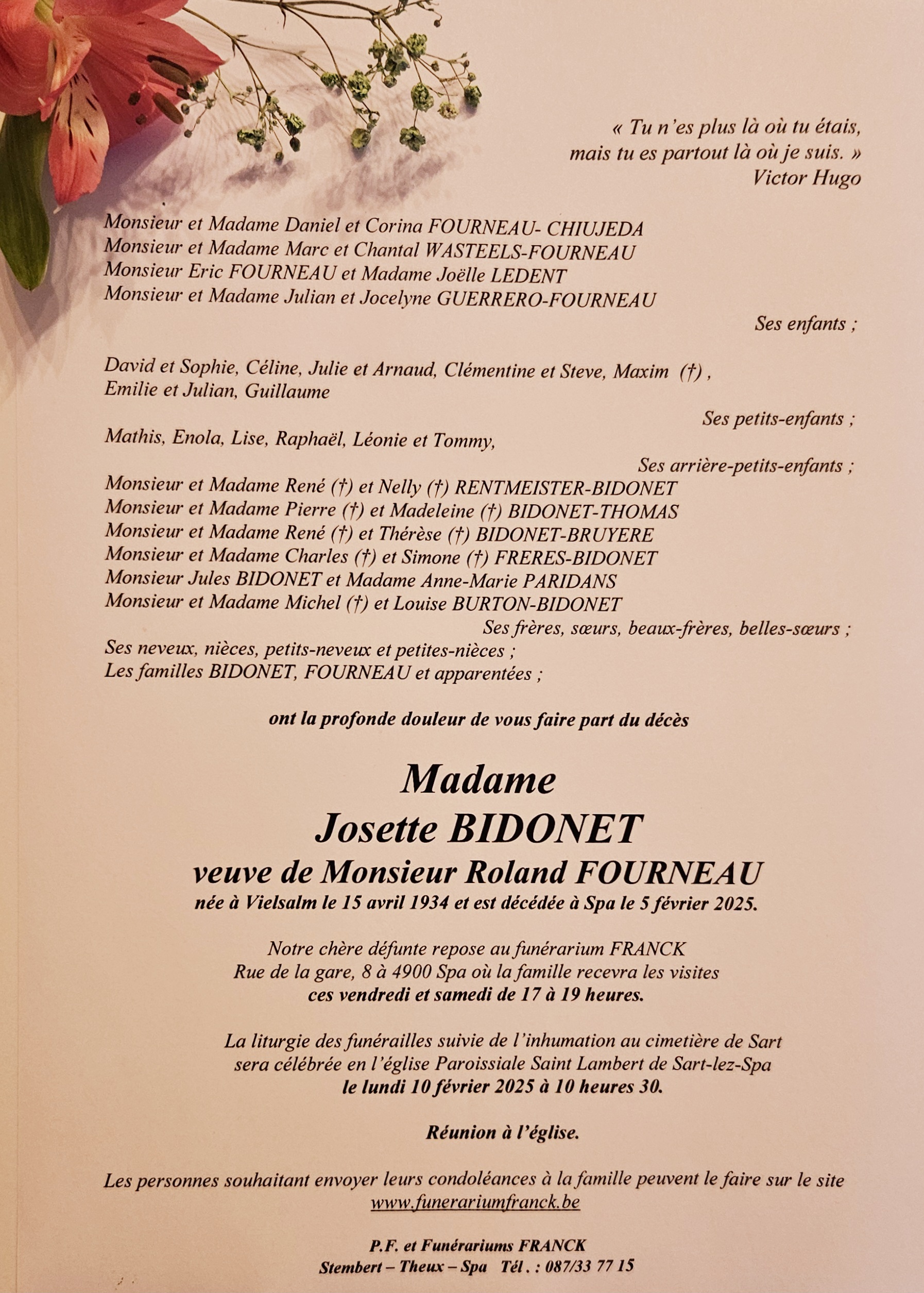 Envoyez vos condoléances à la famille