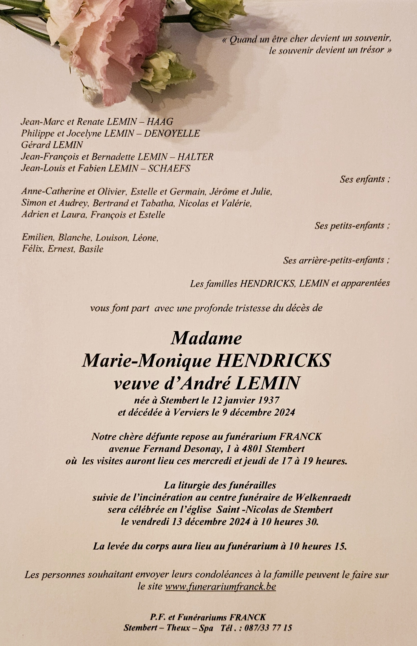 veuve d’André LEMIN