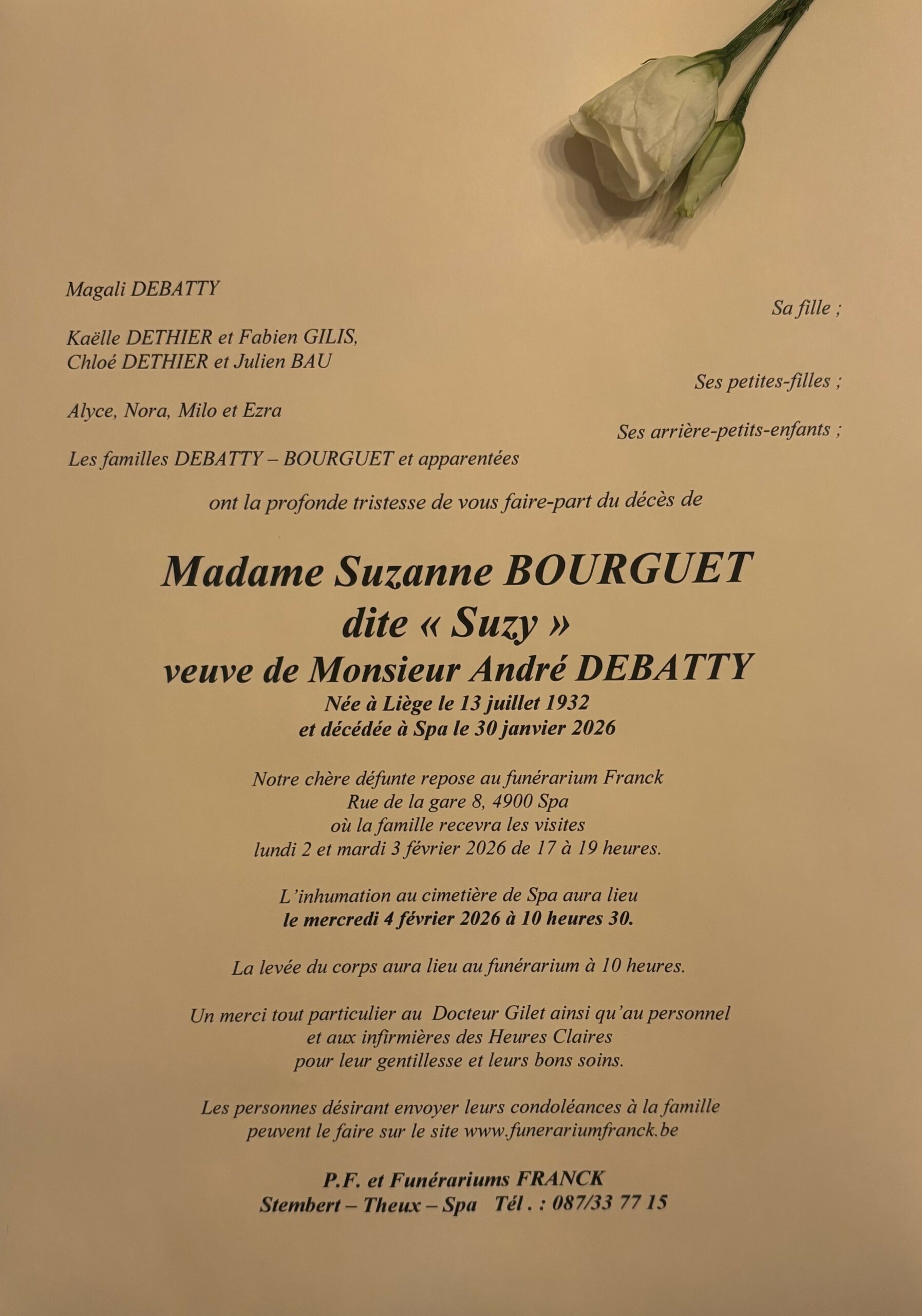 Envoyez vos condoléances à la famille