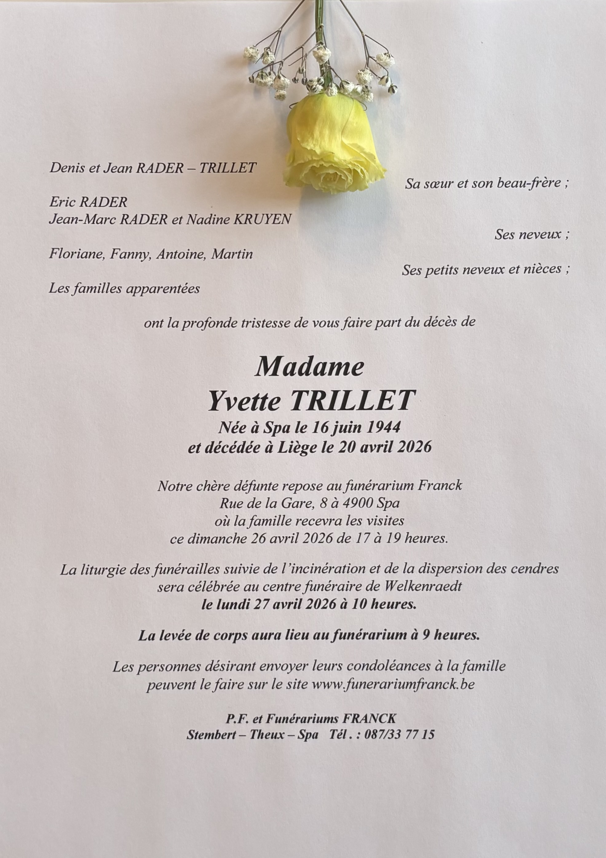 Envoyez vos condoléances à la famille