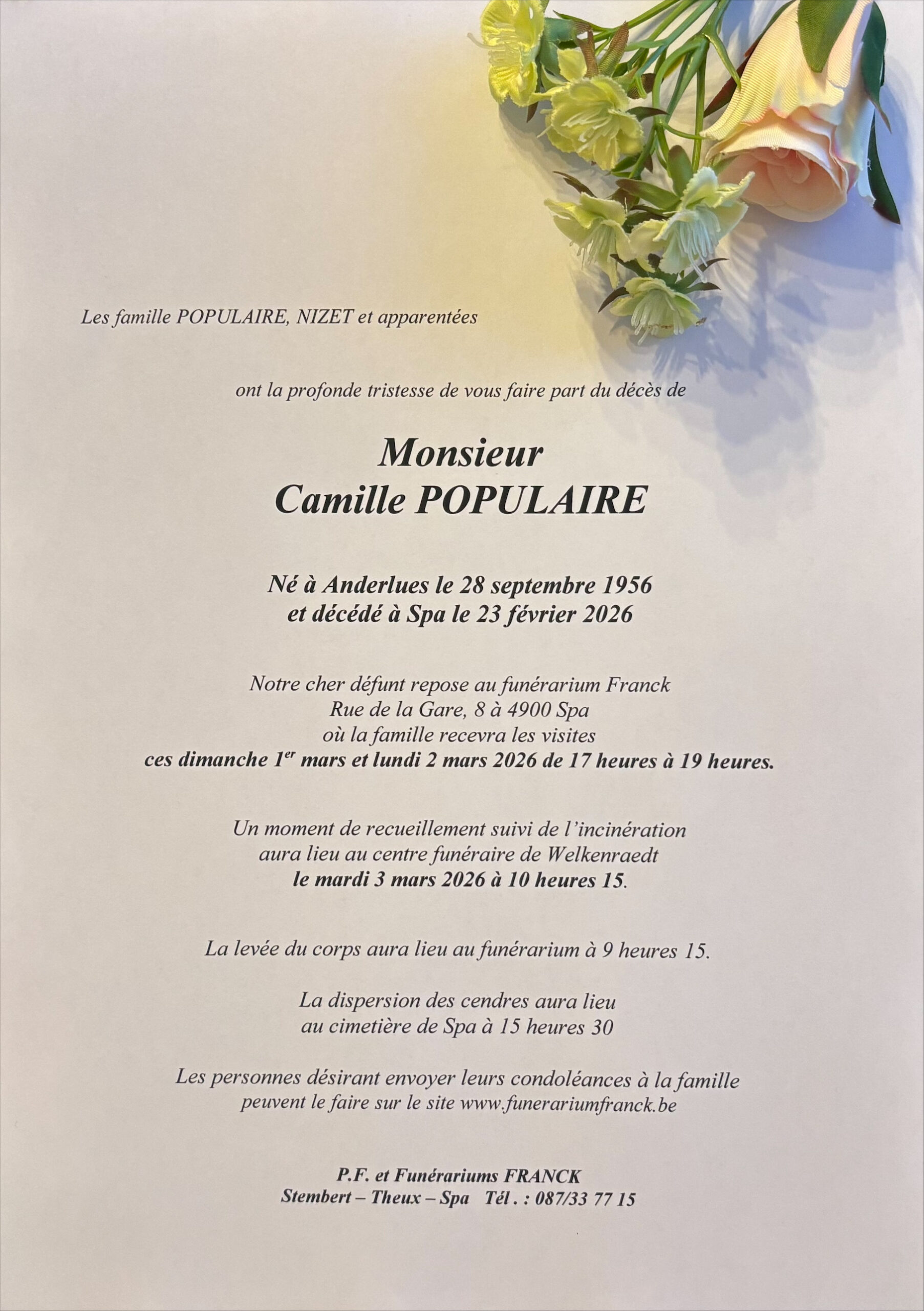 Envoyez vos condoléances à la famille