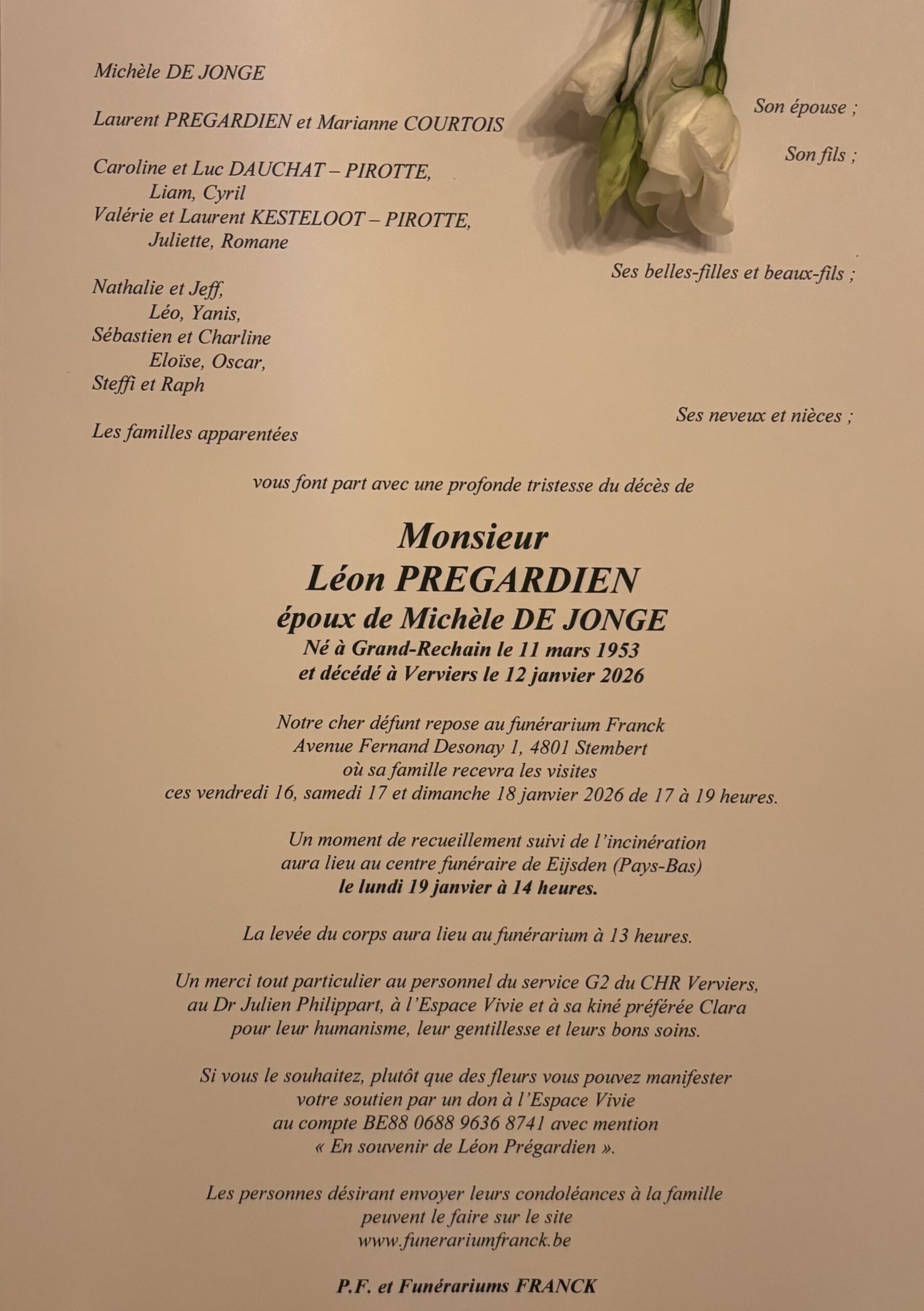 Envoyez vos condoléances à la famille