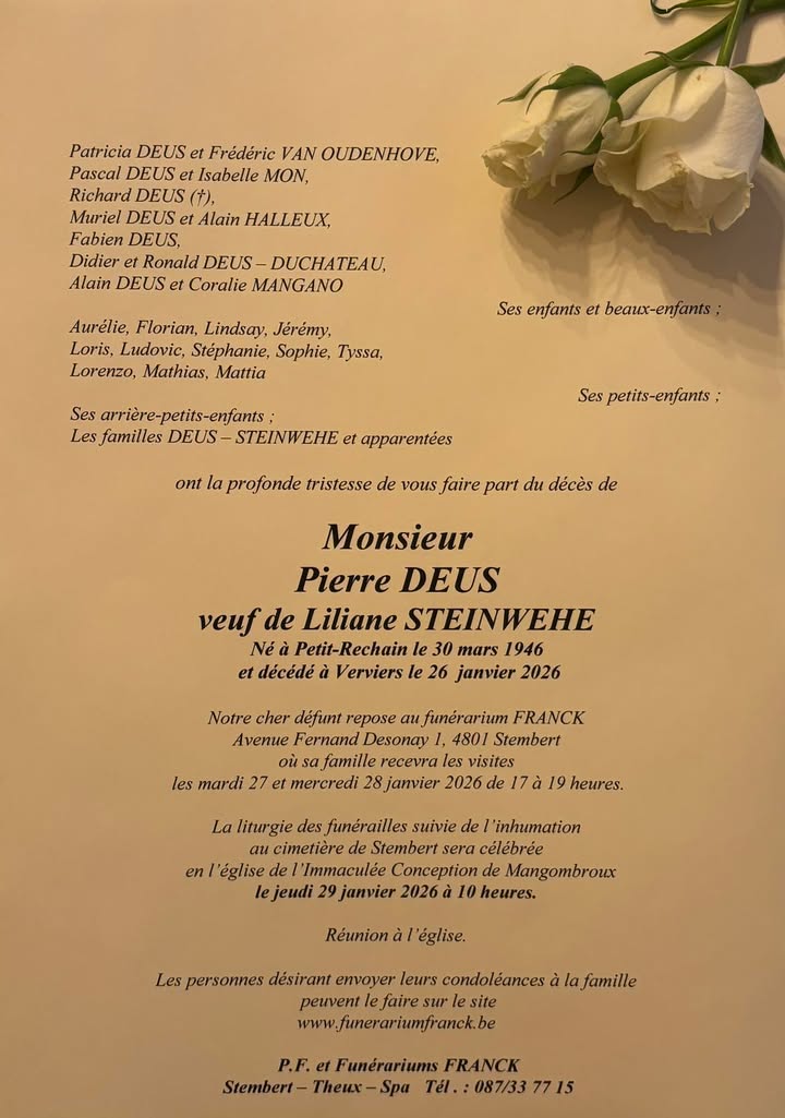 Envoyez vos condoléances à la famille
