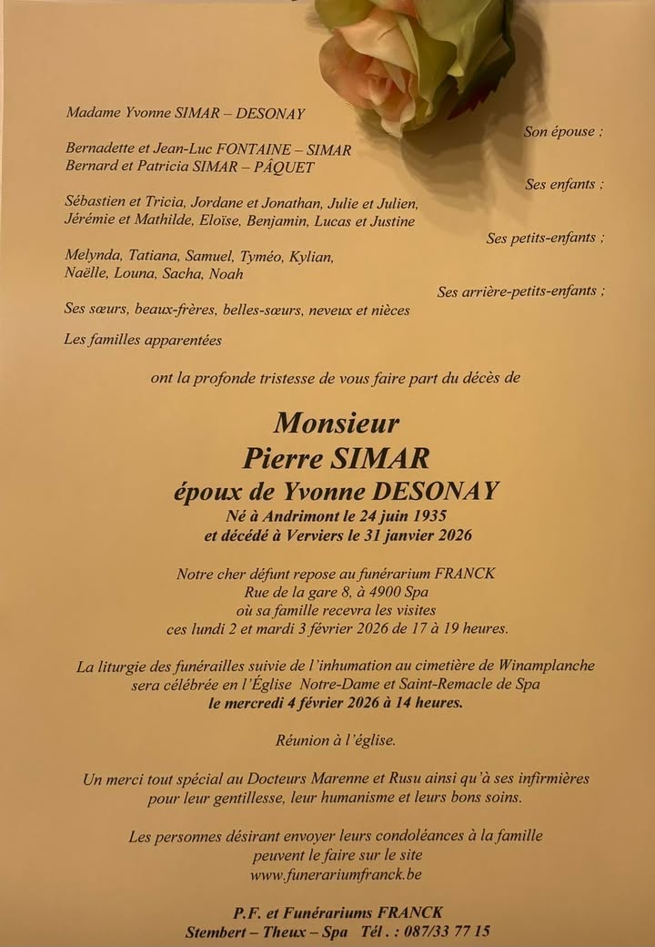 Envoyez vos condoléances à la famille